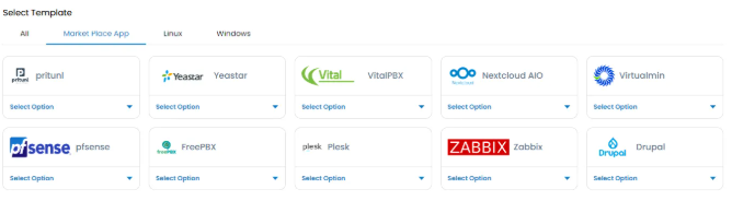 Log in to portal.antyxsoft.io and during the instance creation at the Select Template section click on the Market Place App tab.