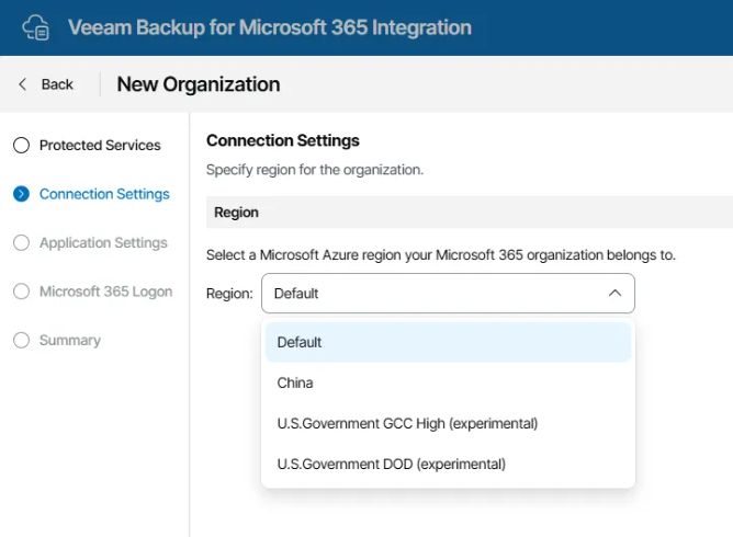 Specify the region your Microsoft 365 organization belongs to.