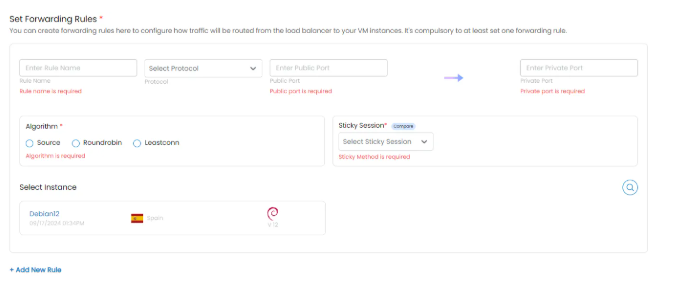 - Stickiness (Optional): Choose the algorithm for the stickiness policy. A sticky session load balancer ensures a user's requests are consistently routed to the same server during their session.
