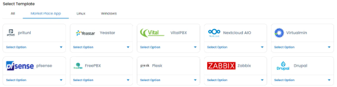 Log in to portal.antyxsoft.io and during the instance creation at the Select Template section click on the Market Place App tab.