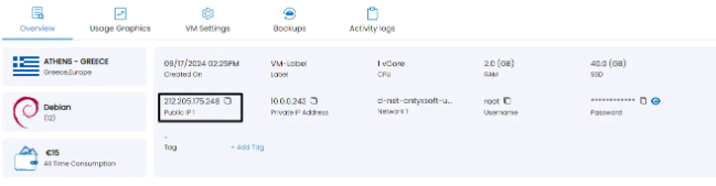 To access the Odoo dashboard, first you will need to copy the Public IP of the VM, located in the Overview section at the Instance menu.