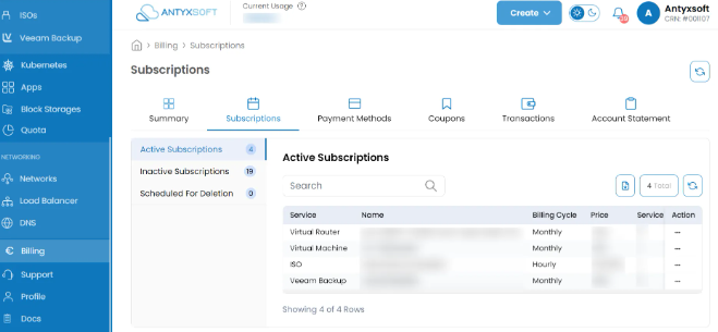 Subscriptions allow you to access and use cloud services based on your selected plan. Through our cloud portal, you can view, modify, and manage your active subscriptions with ease.