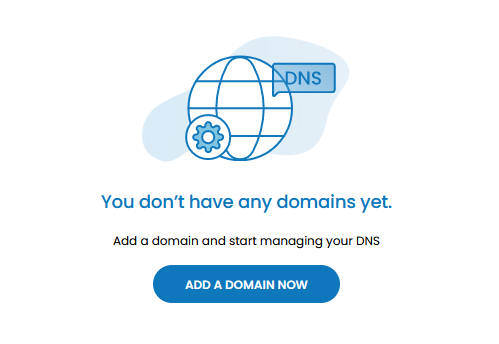 Adding your domain is an easy process. If it's your first time adding a domain, on the DNS page you will see a big blue button Add a Domain Now that's where you want to click.