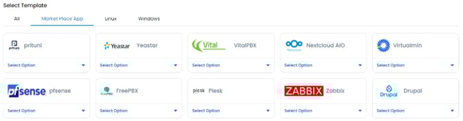 Log in to portal.antyxsoft.io and during the instance creation at the Select Template section click on the Market Place App tab.