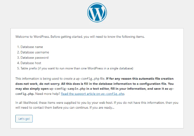 After pressing the Let's go! button you will be asked to enter your database connection details. You can use the database which is provided with the template or connect an external.