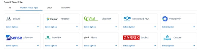 Log in to portal.antyxsoft.io and during the instance creation at the Select Template section click on the Market Place App tab.