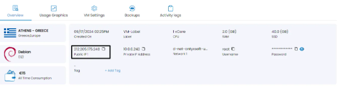 To access the Yeastar dashboard, first you will need to copy the Public IP of the VM, located in the Overview section at the Instance menu.